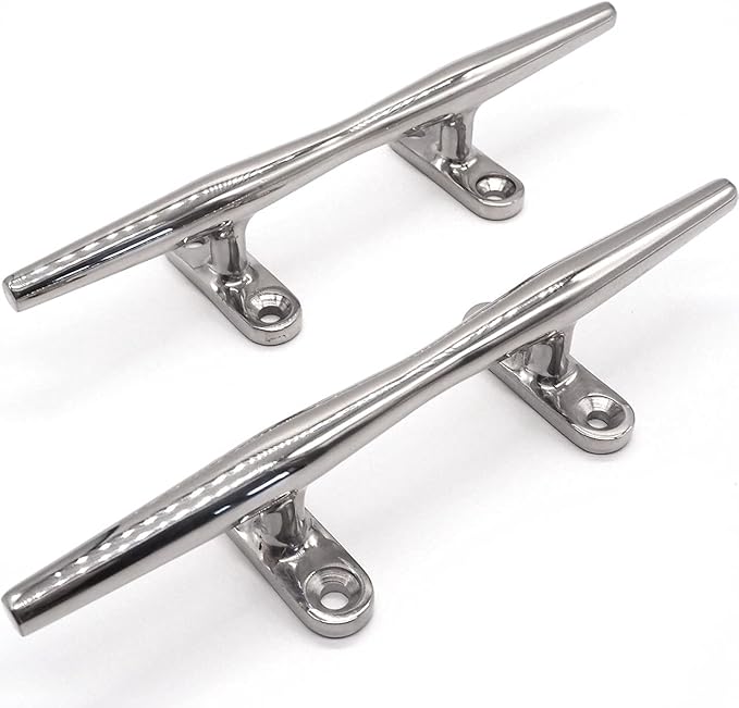 【概要】 ステンレス製のボートクリート二つセットになります。4点留めのため、しっかりと固定できます。様々なボートやカヌー、カヤックなどに取り付け可能。船とドックを繋げてくれる需要や役割を果たします。 【対応ボード】 ~25ft 中型艇 船・ボート・ヨット・ジェットスキーなどの係留におススメです。またサイズも200mm,250mmと用意しており小型から大型の船にも対応可能です。 【品質】 ステンレス製で錆びにくく、耐久性が高いです。また精密研磨により磨き上げており、美しい仕上がりを維持しています。 【応用】 船以外にもビーチやプール、装飾など屋外用途にも使用可能です。またクリートの取り付けはビスで簡単に取り付け可能です。 【仕様】 ■カラー:シルバー ■材質:ステンレス ■長さ:約200mm, または約250mm