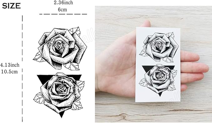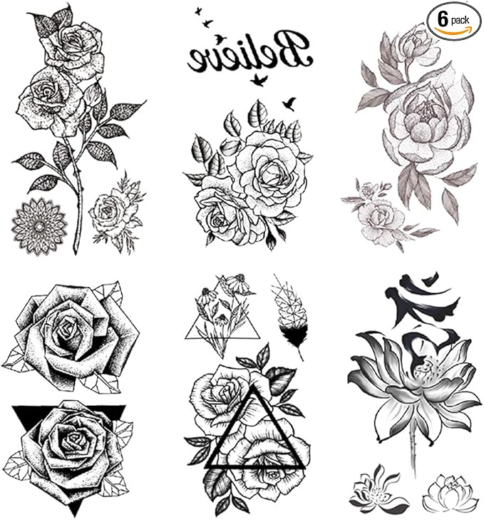 Yesallwas タトゥーシール 薔薇 黒 バラ 花 6枚セット 入れ墨シール リアル 防水 長持ち 刺青シール ボディーシール メンズ レディース black rose flower temporary tattoos 6x10.5CM (花)