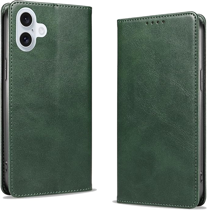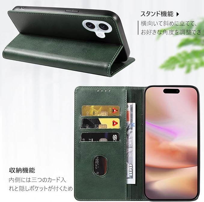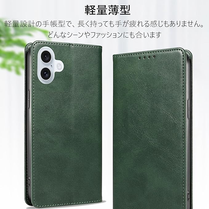 【KWATUNG】iphone 16 ケース 手帳型 PUレザー アイフォン16ケース 手帳型 軽量 薄型 マグネット式 iphone16ケース手帳型 カード収納 スタンド機能 iphone 16 手帳型 ケース 衝撃吸収 落ち着いた色 iphone 16 スマホケース アイフォン16手帳型ケース 放熱性 折りたたみ【グリーン】