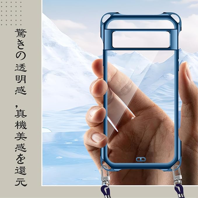 Google Pixel 8a ケース クリア ショルダー 耐衝撃 ピクセル8a カバー 透明 スマホケース 織りストラップ付き 肩がけ 首掛け 紐付き カバー 縄掛け シングルショルダーロープ 斜めがけ 調節可能なショルダー クロスボディ 多目的キャリー ファッションデザイン TPUスマホ 柔軟 軽 薄 (ブルー)
