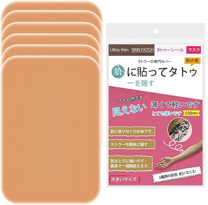 【タトゥー隠しシール】貼るだけで、タトゥーや傷跡などが消える隠しシールです。タトゥー隠しシール6枚入り。 タトゥー、傷跡、あざ、白い斑点、ほくろ、あざ、キスマーク、妊娠線などの難しいシミも簡単にカバーできます。。