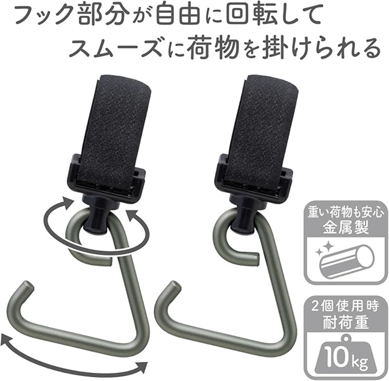 ダイヤ (Daiya) ベビーカーフック バギーフック ブルー 2個セット ワイドフック 幅広 360度回転 マジックテープ ベルト式 金属製 アルミフック 荷物掛け ベビーカー 荷物 フック 頑丈 030535
