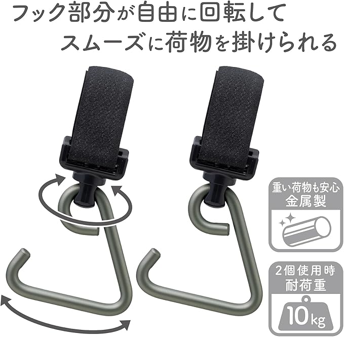 特徴3:金属製のフックなので頑丈で重たい荷物をかけられる
