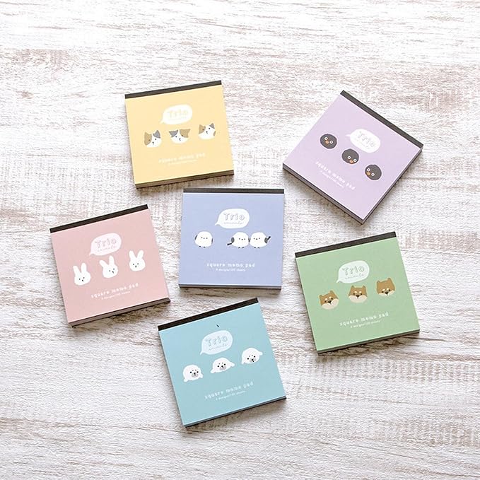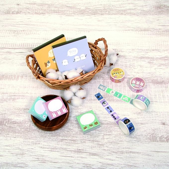 【その他】4つのデザインを使い分けた正方形のメモ、各デザイン25枚ずつで丁度よい枚数になっています。