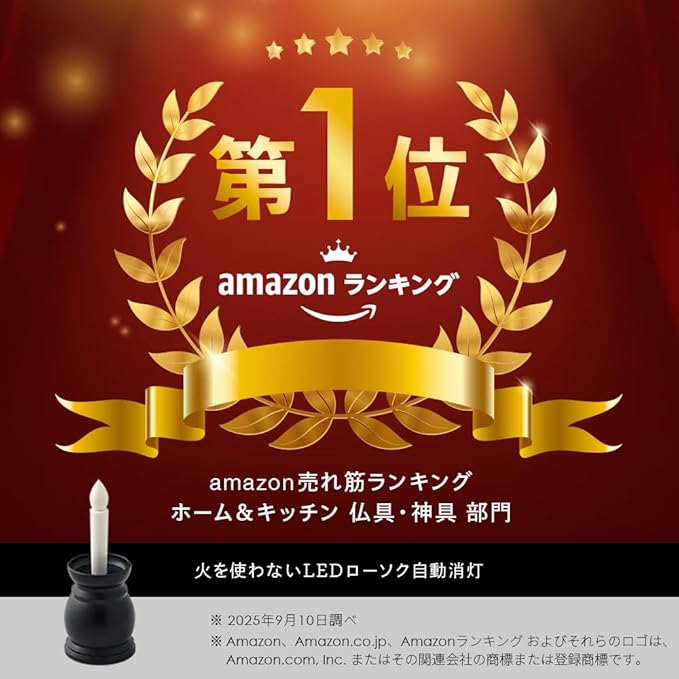 消し忘れの心配無し!火を使わないLEDローソク。自動消灯で安心してお使い頂けます。小さなお子様がいるご家庭や一人暮らし、ペットがいるご家庭に。ミニサイズで、コンパクトな仏壇、神棚にも。約10分間の自動消灯機能付。