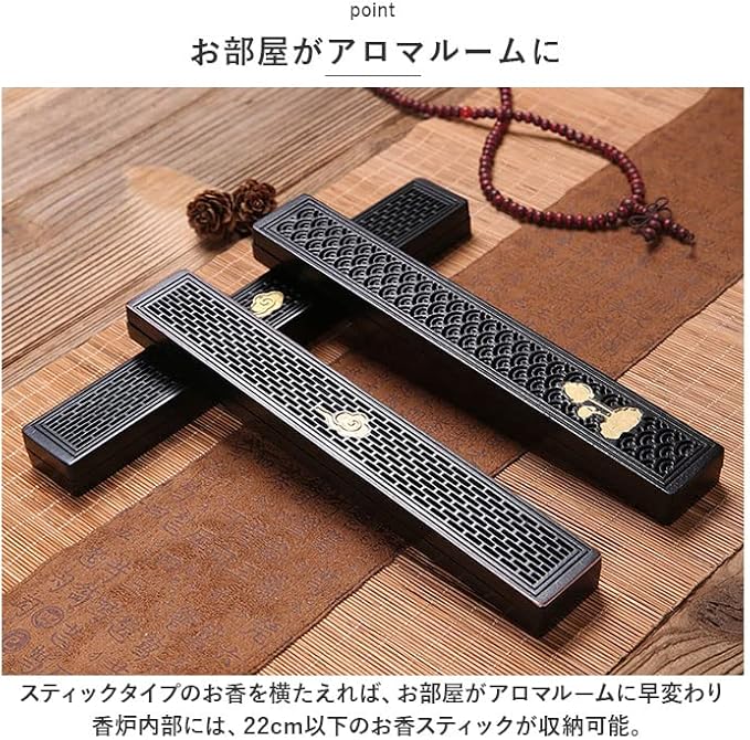 スティックタイプのお香を横たえれば、お部屋がアロマルームに早変わり。香炉内部には、22cm以下のお香スティックが収納可能。