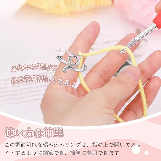 調節可能な編みループ ニットループリング かぎ針編みループ 【4個入り】かぎ針編みアクセサリー 編み物用具 かぎ針を指で固定するのに適しています (猫型)