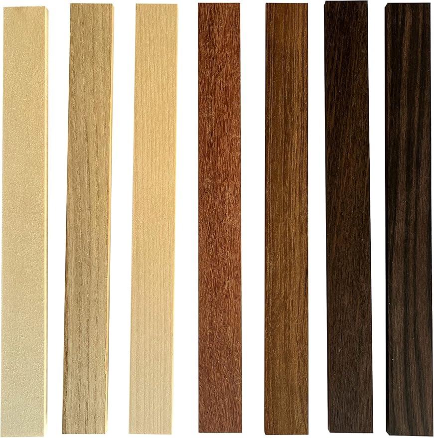 厳選された国内外の銘木各種端材を取り揃えました。全て日本国内工場にて製材しております。1本あたりのサイズ:約 長200 巾20 厚5㎜ 製造国:日本 原産国:黒檀、シャム柿、紫檀=インドネシア産 カリン=東南アジア各国 ウエンジ=ザイール産 チーク=インドネシア・ミャンマー産 サクラ、タモ、シナノキ、ブナ=日本産 ウォールナット=北米産