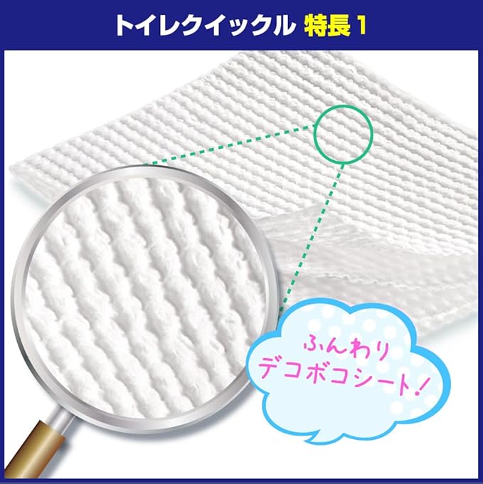 たっぷりの洗浄液で、便器から床まで汚れをスッキリ落とせるトイレ用お掃除シートです。