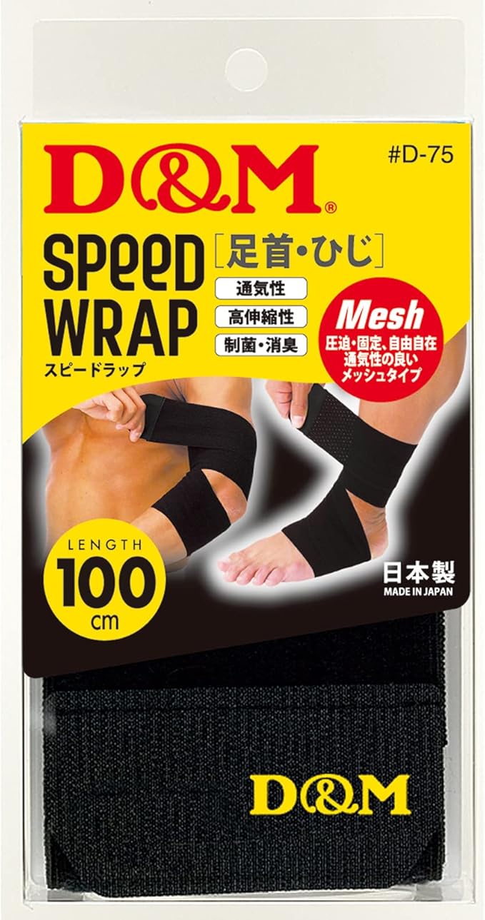 D&M ディーアンドエム スピードラップ 肘・足首サポーター 肘・足首兼用 スピードラップ 黒 フリーサイズ 日本製 D-75 固定 サポート 伸縮 長さ調整可 スポーツ ダンス