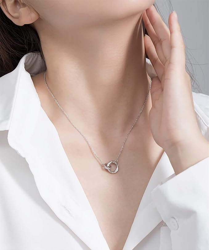 [Mieduaxy] ネックレス レディース 人気 メビウスネックレス ダブルリング/ハートの形 ファッションデザイン 最高級のキュービックジルコニア S925 ペンダント 金属アレルギー対応 クリスマス チタン 誕生日 プレゼント 女性 K18金 カップル 記念日 プレゼント Fall in Love/Ti Amo(愛してます イタリアの) レタリング