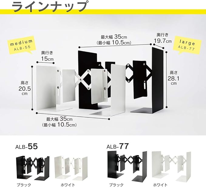 ●書籍の量に応じて間口を自在に開閉できる便利なブックエンドです。●最適な幅でブックエンドを活用できるので机上のスペースを節約できます。●丈夫で耐久性の高いスチール素材は、強固で形崩れしにくく、書籍の重さで生じるズレや開きを防止します。●仕切りがついているので、本を取り出した時に倒れにくく書籍を分類して整理できます。●背あてがあるので後方に書籍がおちることもありません。●書類の重さで生じるズレや開きを防止します。