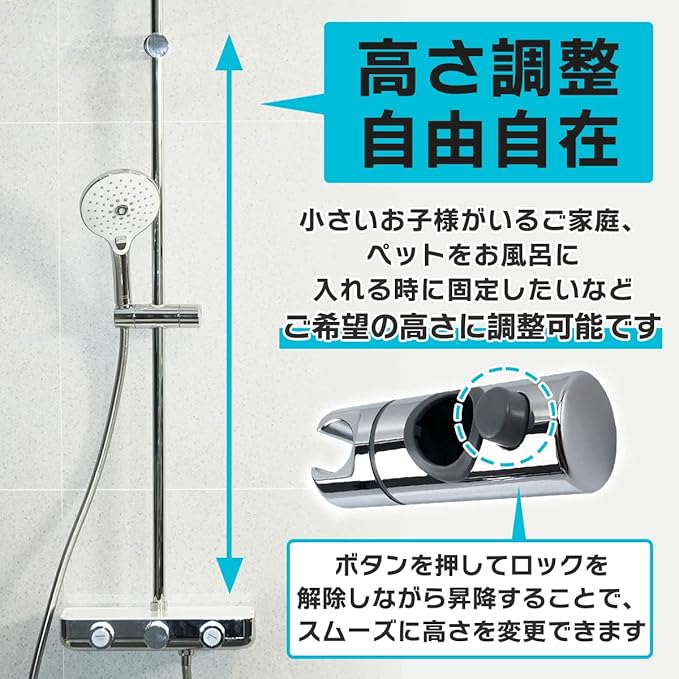 また、シャワー引っかけ部分がややきつめのため、ご使用のシャワーによってはやや浮き気味になる場合もございます。予めご了承くださいませ。