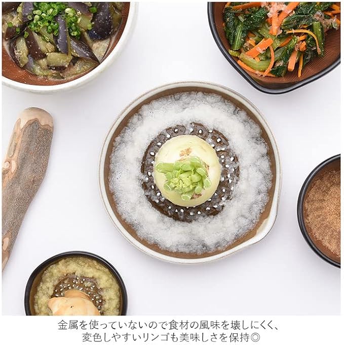 日本の伝統工芸”石見焼”のおろし器「もとしげ」中サイズ。