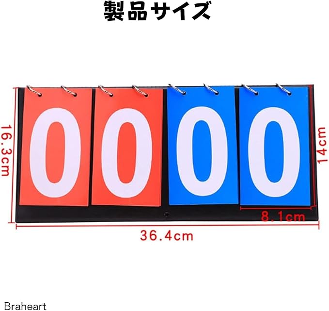 Braheart 4桁 スコアボード 得点板 得点ボード 折り畳み可 防水加工 携帯便利 読みやすい スコア表 各種スポーツに適応 競技 野球 サッカー バスケットボール 卓球 スポーツ用