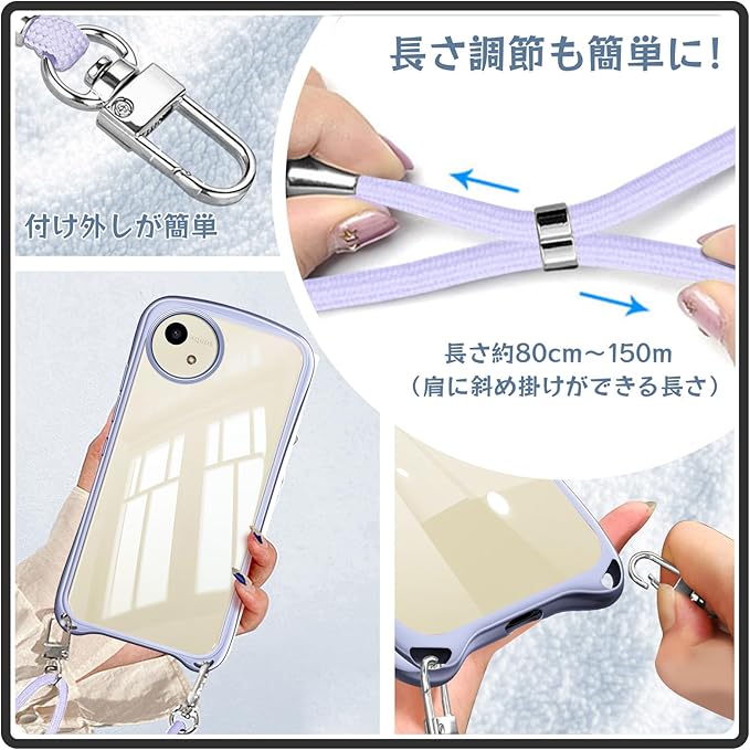 AQUOS wish4 ケース ショルダー クリア アクオスウィッシュ4 カバー 斜めかけ 縄掛け 肩掛け 首掛け ストラップ付き 耐衝撃 メッキ加工 薄型 軽量 TPU バンパー アクオス wish4 SH-52E 韓国 可愛い かわいい スマホケース スターリバーシルバー