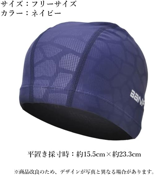 シンプルでスタイリッシュなデザインのスイムキャップです。 防水・耐久性・高弾性に優れておりプールの塩素から髪を守ってくれます。 【商品仕様】 サイズ フリーサイズ カラー ネイビー ※完全防水ではございません。