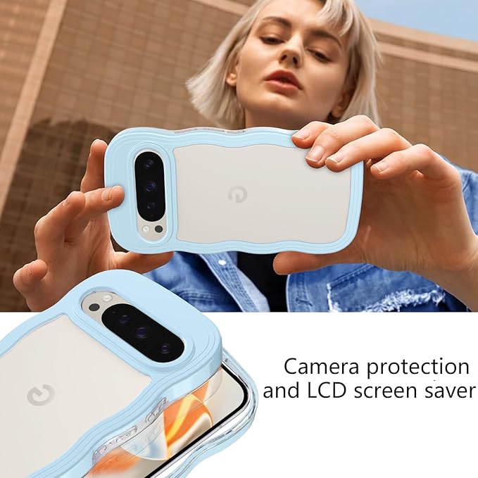 【Newnugds】Google Pixel10/10 Pro/9/9 Pro ケース グーグル ピクセル10 ケース 韓国 おしゃれ シンプル 波状エッジ 透明 2in1 Pixel 10 カバー 創意 個性 超軽量 可愛い 女子向け 指紋防止 擦り傷防止 全面保護 耐衝撃 人気Pixel10/10 Pro/9/9 Pro カバー ライトブルー