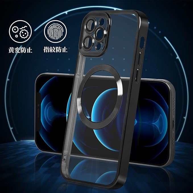 iPhone12promax ケース クリア 米軍MIL規格 Magsafe対応 ワイヤレス充電対応 指紋防止 2023年新型 iPhone 12 Pro Max 用 ケース 6.7 インチ マグネット搭載 耐衝撃 黄ばみなし (ブラック)