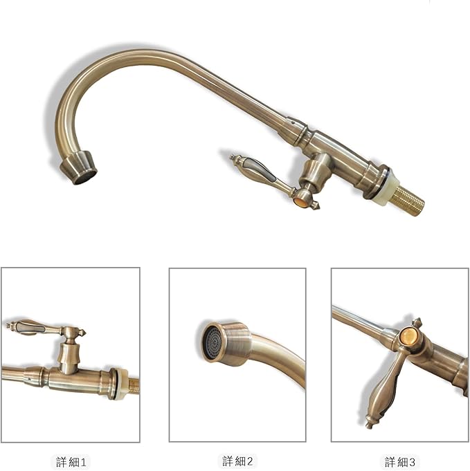 蛇口が360 回転しますので、とても使い勝手がいい単水栓です! アンティーク調の気品とレトロなデザインがオシャレで古風な風格がとても素敵なバスルーム・洗面用の単水栓です! ドッシリとした風格あるアンティーク調のデザイン、懐かしさとレトロな時間と空間を演出してくれます。