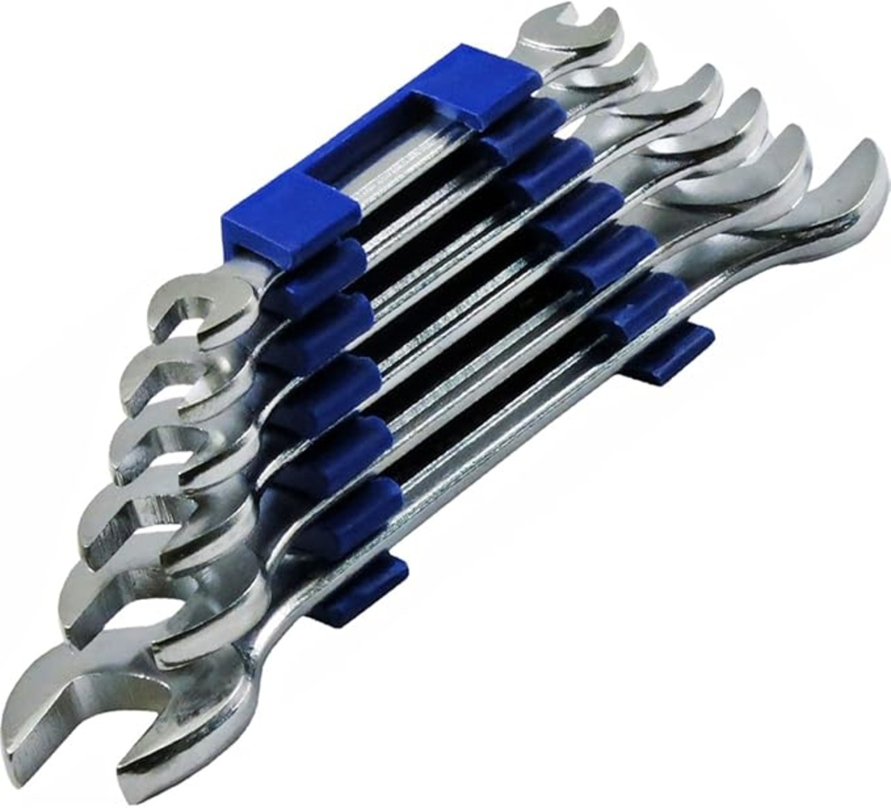 ●1セットあると何かと便利な両口スパナ 6pcs.セット●スパナを傾けず、ナットに対して90 の角度で回すとしっかり回せます。●スパナは素早く仮締めができます。