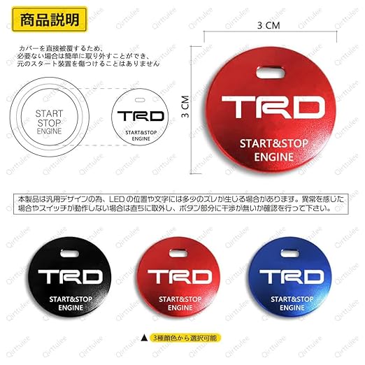 【適合車種】TRD すべての年式とすべてのモデルに適合,汎用イグニッション スイッチ プッシュ エンジンスタート ボタン アルミ カバー アルミニウム合金製,ご購入前にサイズを確認してください