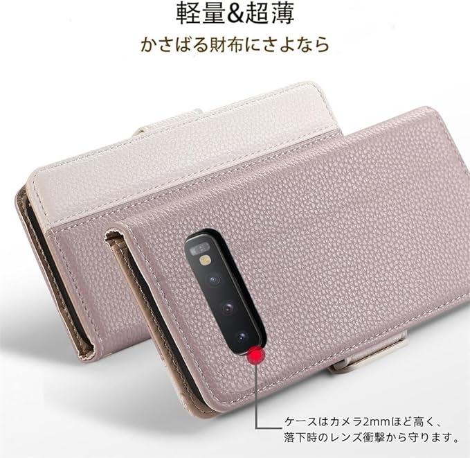 【カード収納】Galaxy S10財布型スマホケースの内側には3つのカードポケットが付いています。少量の現金とカード類2枚を携帯することができ、通勤や通学に重いバッグを背負う必要はありません。携帯電話を持って、いつでも外出できます。