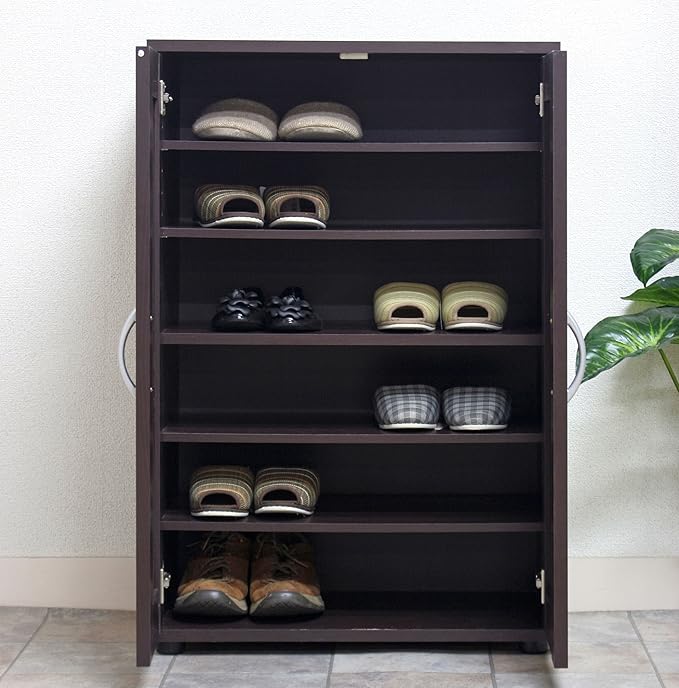 不二貿易 下駄箱 シューズボックス 6段 幅60 奥行33.5 高さ90cm ナチュラル 靴箱 両開き 玄関収納 可動棚 86036