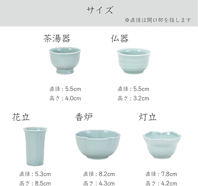 同シリーズ(仏飯器、湯呑、花瓶、燭台、香炉等仏具セット)の単品販売です。他シリーズのお香立てや線香差し、供物台、おりんと合わせての使用など、自由な組み合わせをお楽しみいただけます。