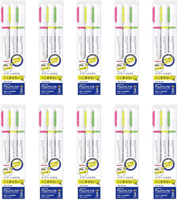 ゼブラ 蛍光ペン ジャストフィット モジニライン 3色 10個 B-WKS22-3C