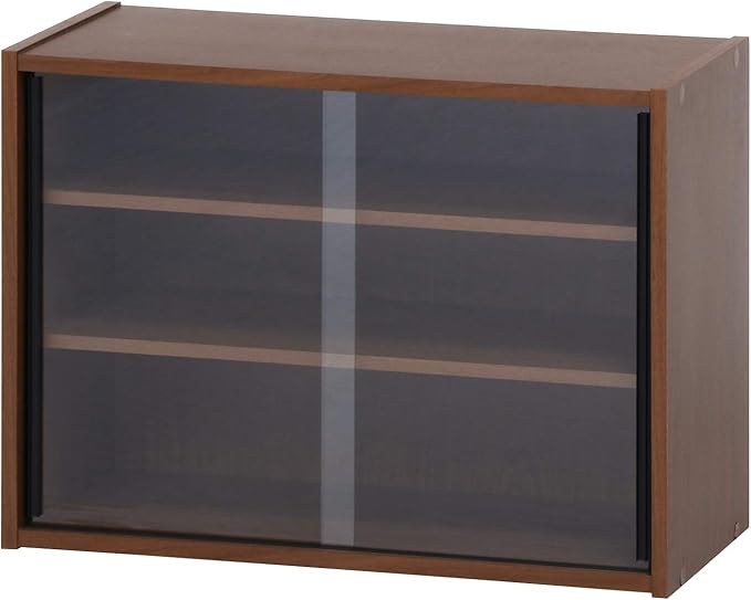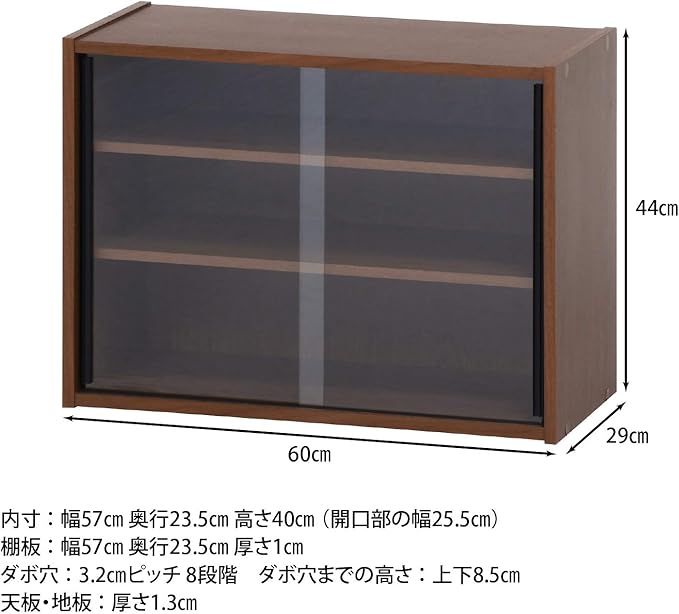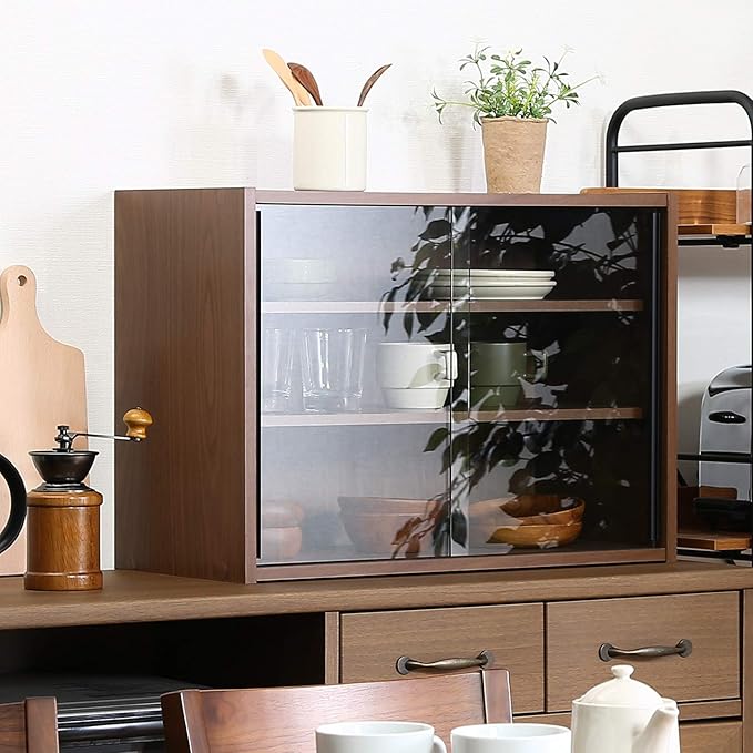 不二貿易 食器棚 キッチン収納 幅60 奥行29 高さ44cm ミディアムブラウン ガラス扉 可動棚 組立品 99435