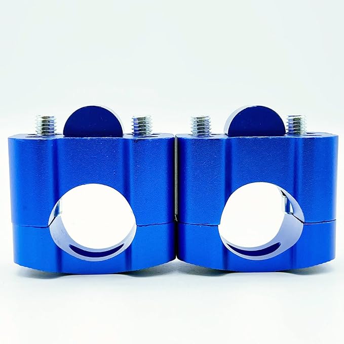 純正のハンドルクランプに取り付けるだけでハンドルポジションが約3cmアップ。カラーはブルーになります。※取付ピッチとハンドルパイプ径をご確認ください。