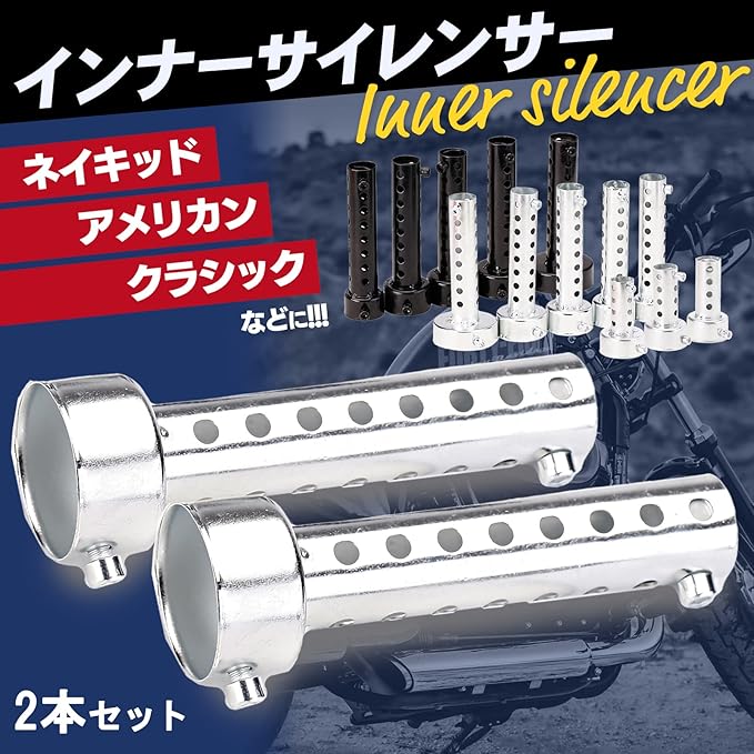 ✅【商品概要】バイクの排気音量を下げる汎用タイプのインナーサイレンサー。音量調整用の中蓋が付属しているため、狙ったレベルでの消音調整が可能です。マフラーサイズが合えば、ネイキッド、アメリカン、クラシック、旧車など様々な車種のオートバイに装着可能です。マフラーに取り付け用のボルトの穴があればボルトオンで簡単に装着できます(※取付穴がない場合はマフラー側に穴あけ加工などが必要です)。