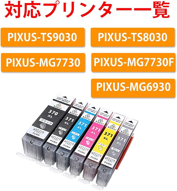 【セット内容】 よく使うブラックは増量版を1本プラス。大満足の5色6本セット BCI-370XL PGBK / BCI-371XL BK / BCI-371XL C / BCI-371XL M / BCI-371XL Y / BCI-371XL GY