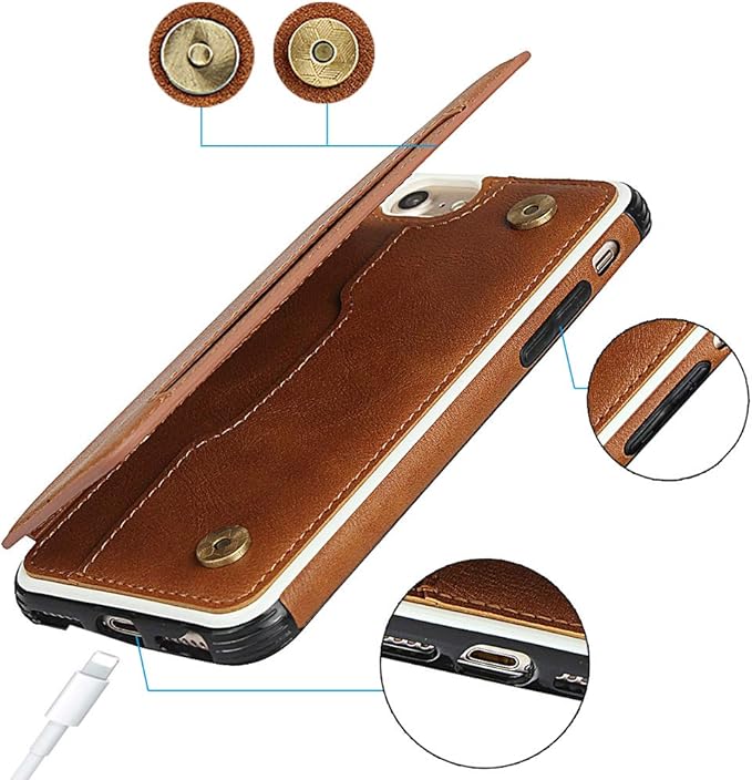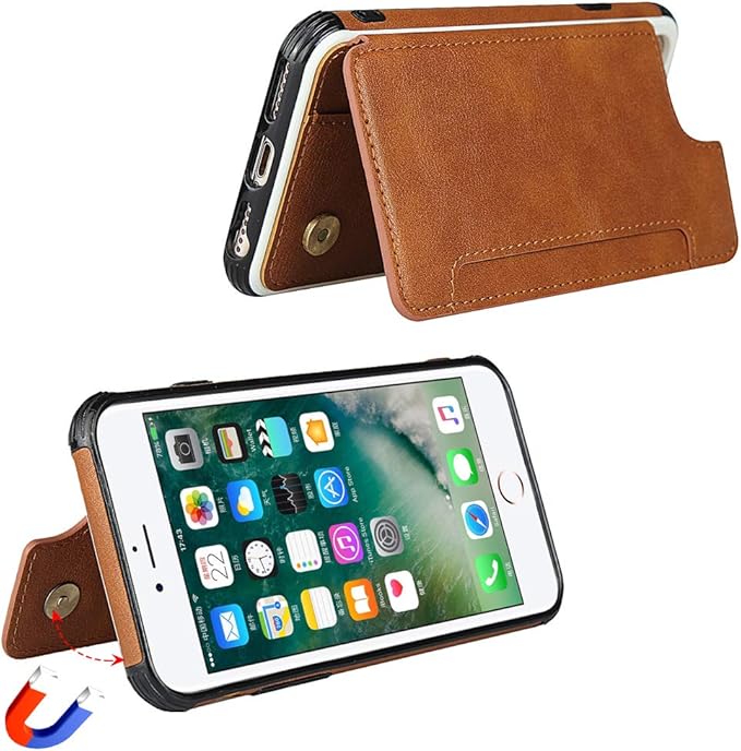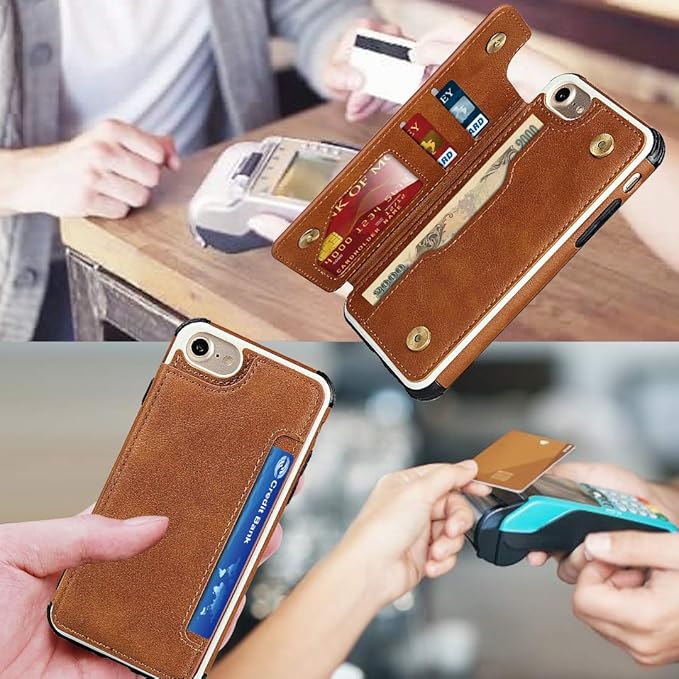 Pelanty for iPhone SE 第3世代 2022 /SE 第2世代 2020 手帳型ケース for iPhone7/8/6/6s ケース縄掛け 背面カバー PUレザーケース IC カード収納 スタンド機能 ボタン磁気 多機能 携帯カバー 軽量 耐衝撃 ストラップ アイフォン6/6s/7/8/se2/se3 スマホケース 全面保護 ブラウン