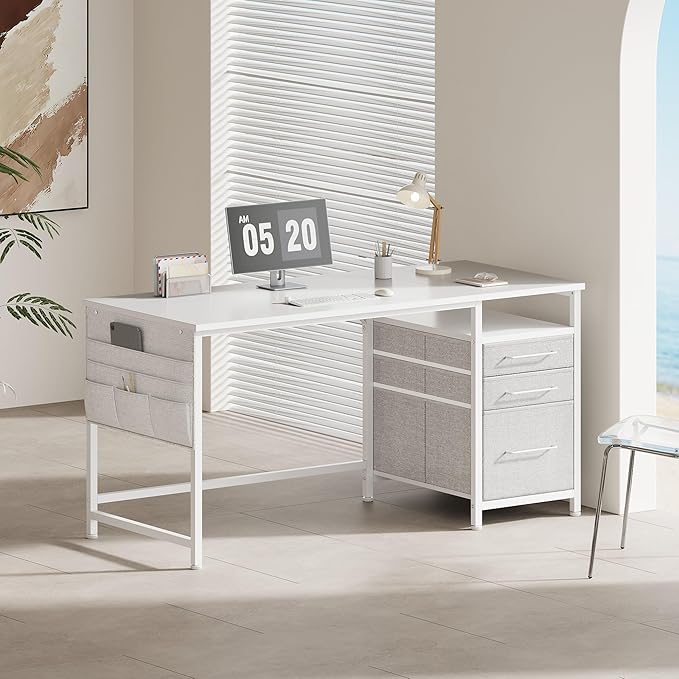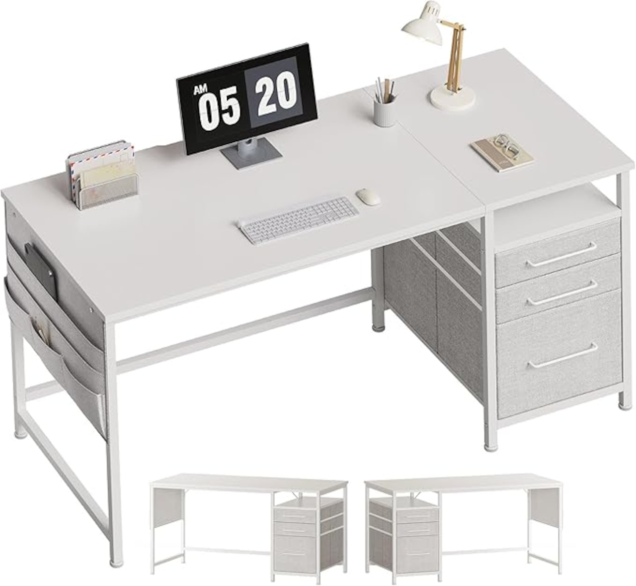 Maihail 机 pcデスク パソコンデスク つくえ ラック付きデスク 幅140cm 奥行60cm 引き出し付き 在宅ワーク デスク オフィスデスク 勉強机 学習机 左右入替可 テレワーク 白い