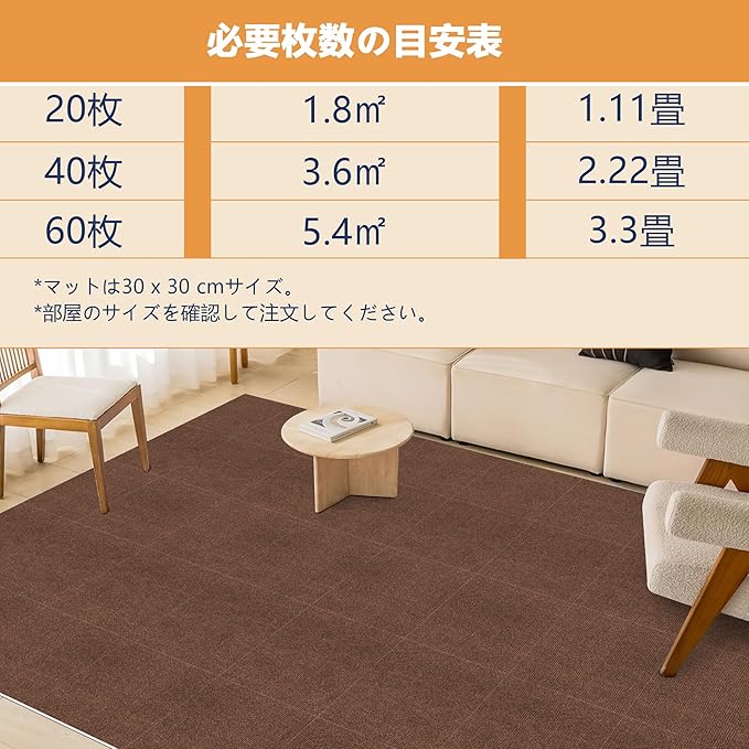 【Amazon 限定限定商品】Piiyoow タイルカーペット 30*30cm 20枚 ジョイントマット ペット カーペット パンチ・タイルカーペット 床マット 適度な厚み ペットフレンドリー すべりどめ 騒音を減らす 吸着力が強い ビッグサイズ 床暖房対応 簡単な洗浄 マルチシーン対応【ブラウン】