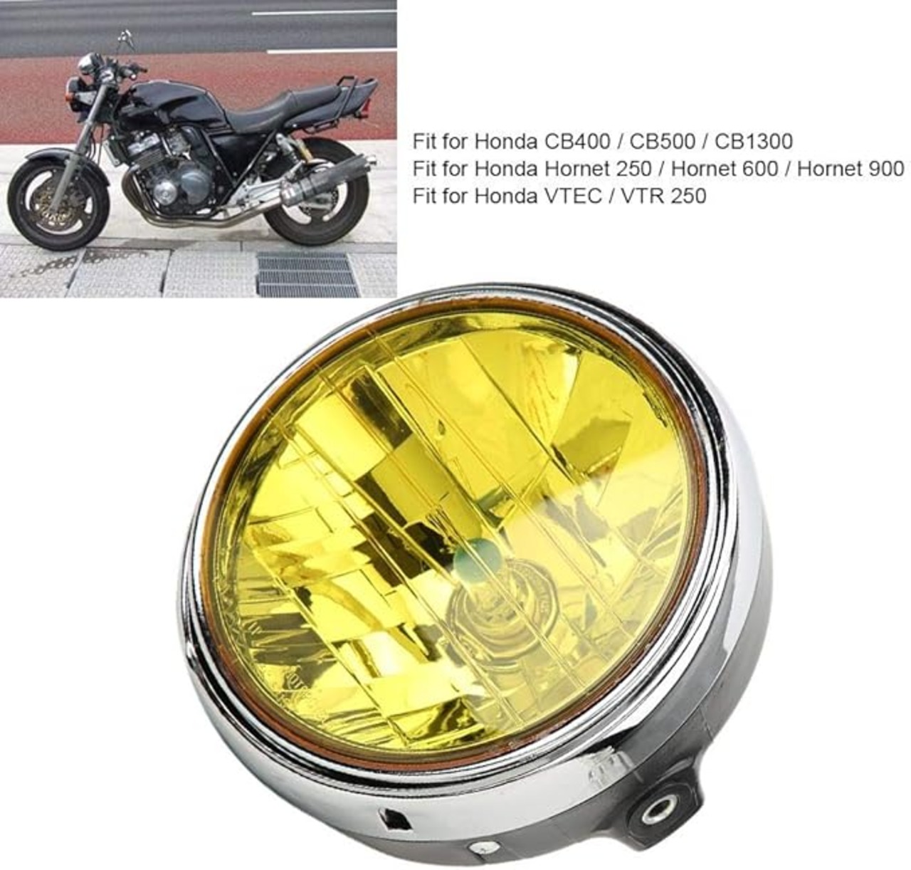 LEDヘッドライト バイクヘッドライト オートバイヘッドランプ メタル+ PCレンズ (黄色) 発光効率高い 安全性向上 耐食性 耐久性 直径17.5cm ホンダ ホーネット250 /ホーネット600 /ホーネット900 / ホンダCB400 / CB500 / CB1300と互換性あり