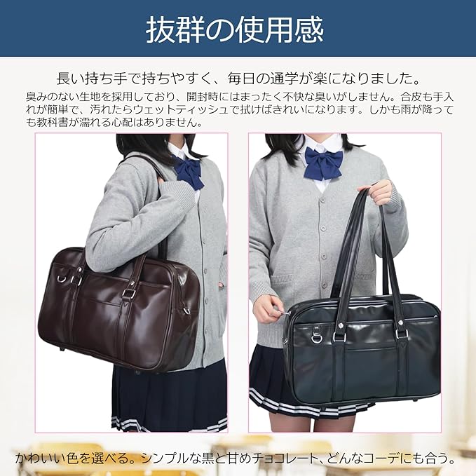[Neigeuse] スクールバッグ スクバ 高校生 女子 合皮 肩紐長め 通学バッグ 大容量 肩紐長め 学生バッグ 軽量 大きめ 男女兼用 黒 茶色