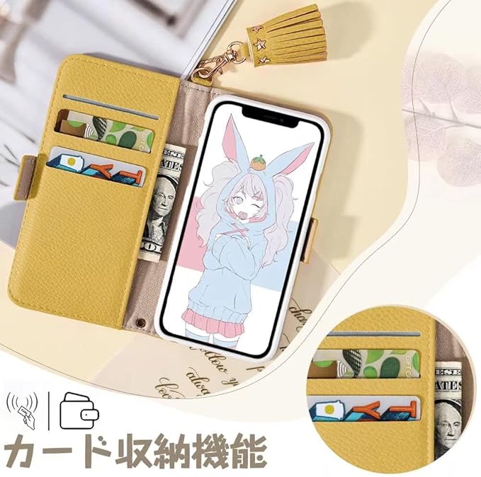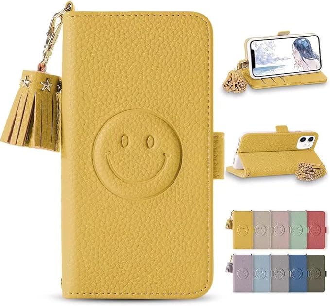 iPhone 16 PRO スマホケース 笑顔 可愛い アイフォン 16 PRO 携帯カバー かわいい 財布型 カード収納 iPhone 16 PRO 電話ケース スマホ カバー スマホ収納3枚 iPhone 16 PRO スマホカバー スタンド 機能 アイホン 16 PRO 携帯 ケース 肌触り良い カード入れ機能(イエロー)