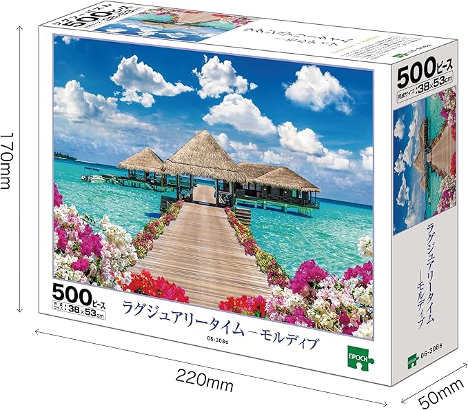 エポック社 500ピース ジグソーパズル 海外風景 ラグジュアリータイム-モルディブ (38 53cm) 06-308s のり付き ヘラ付き 点数券付き EPOCH