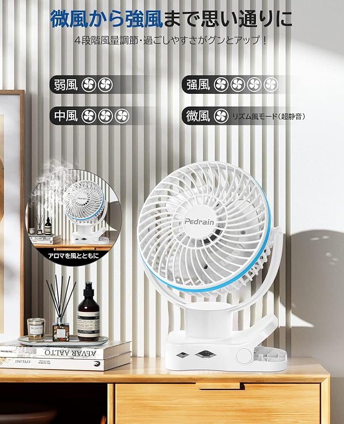 卓上扇風機【2025年新機型 極静音&夜灯機能】360度自動首振り クリップ扇風機 壁掛け 吊り下げ usb扇風機 小型 ミニ 循環ファン 超強風 風量4段階調節 アロマ対応 TYPE-C 充電式 スマート急速充電対応 長時間連続使用 usbファン リモコン サーキュレーター 車用 携帯扇風機 キャンプ アウトドア 熱中症対策 職場 寝室