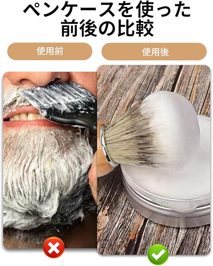 【お手入れ簡単】ひげを剃るたびに、ブラシを流水で慎重にすすぎ。ご使用後は、水洗いをし風通しの良い所で必ず、ブラシ部分を下にしてシェービングスタンドやそれに変わるものに掛けて乾かして下さい。