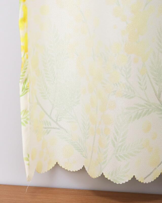 カフェカーテン はっ水加工 外から見えない お風呂などで 2655ミモザ柄 プリント 幅145x丈60cm1枚入