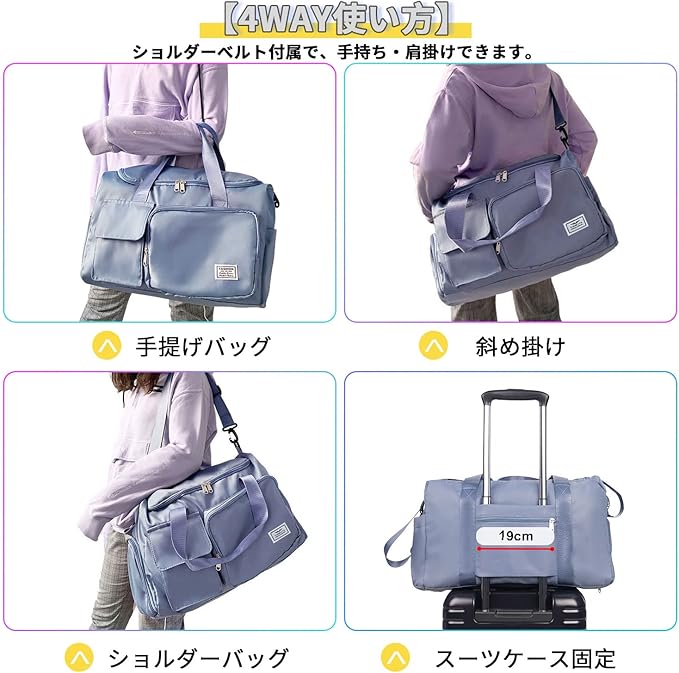 ✅【活躍シーン多様 ユニセックスデザイン】:「4WAYマルチキャリー」で移動がさらに快適に!「手持ち」「肩掛け」「ショルダー」「キャリーオン」の4通りの使い方が可能。幅広い用途に使用できます。ジムバッグ、スポーツバッグ、旅行バッグ、週末バッグ、1泊2泊用バッグ、病院用バッグなどとして使用できます。レディースもメンズも使えるシンプルでスタイリッシュなデザインです。プレゼントにも最適!