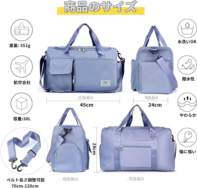 ✅【耐久性抜群!旅行バッグ】:高品質のポリエステル素材を使用したボストンバッグは、耐摩耗性に優れ、長期間の使用に耐える設計です。ジム、旅行、修学旅行やスポーツシーンで活躍するだけでなく、日常使いにも最適です。