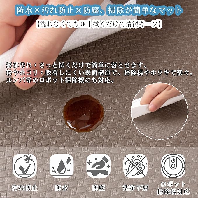 清掃簡単、掃除機&濡れ布でサッとキレイ——防水加工された表面は、油汚れや水滴も染み込まず、掃除機でサッと吸うか、濡れ布でサッと拭くだけ。面倒な洗浄不要、毎日のお手入れが驚くほどラクに。清潔を保つのがこれほど簡単だったとは!