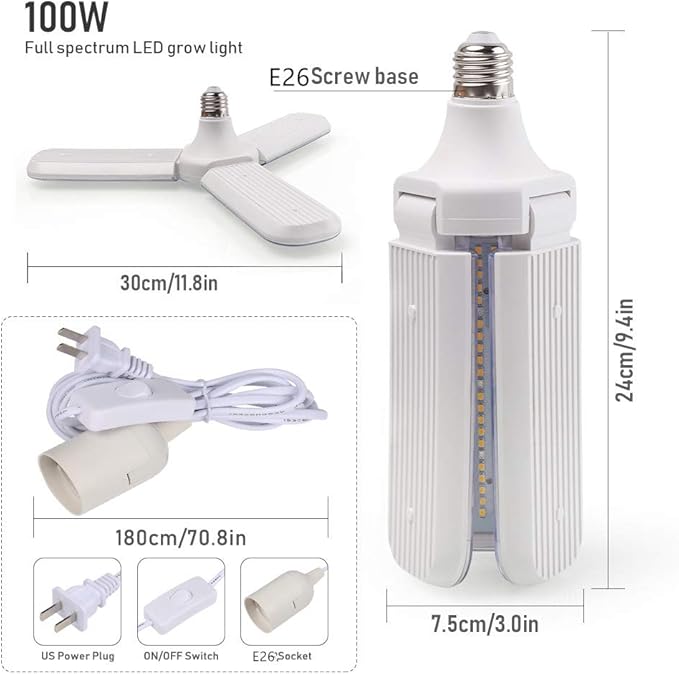 SINJIAlight 植物育成ライト 100W相当 ソケット付き E26口金 電源コード付き 育苗ライト 暖色系 フルスペクトル 水耕栽培 室内栽培用 家庭菜園 植物工場など場合に適合します