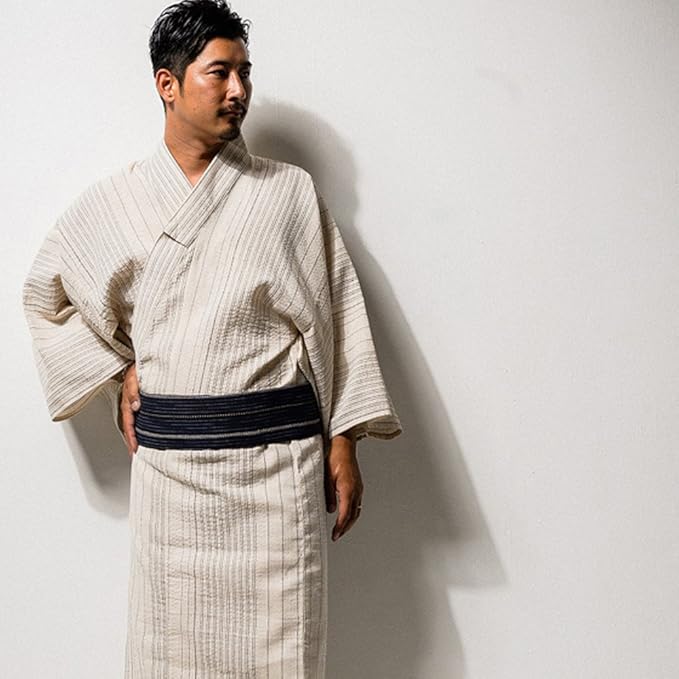 [株式会社三橋商事] メンズ 浴衣 紳士 しじら 浴衣 帯付 ワンタッチ帯 2点セット 3点(雪駄付き)セット