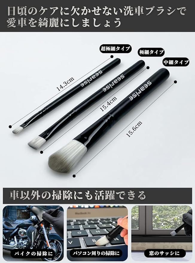 SEARISE ディテールブラシ 洗車ブラシ ディテーリングブラシ 極細タイプ エンブレム 隙間など細部洗浄用 3本セット